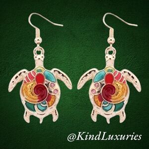 These stunning enameled turtle earrings are available in a beautiful gold finish.