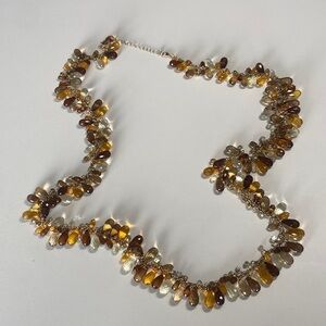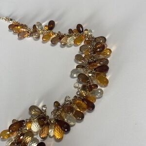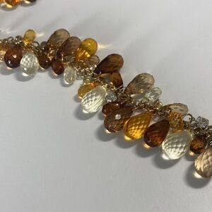 - Multicolored teardrop-shaped faceted gems in shades of brown, amber and beige