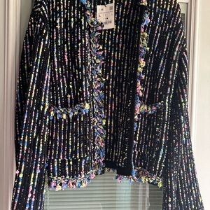 This is a beautiful jacket that’ll be perfect with a turtle neck and jeans or black leather pants.