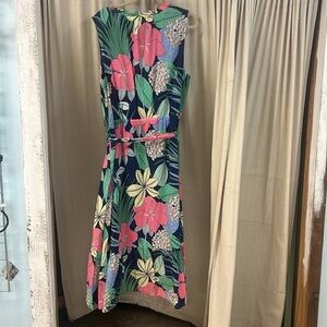 Multicolored Floral Print Maxi Dress with Tie Belt - Talbots Size 22W