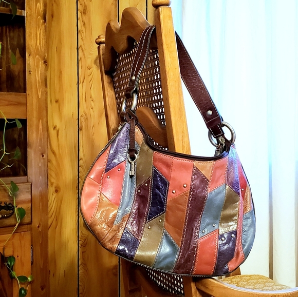 -light blue, dark purple, congac brown, coffee brown, red, and coral strips of leather