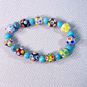 Multicolored Lamp Work Beaded Bracelet 6” And Choose Joy Metal Bracelet Adjustab