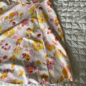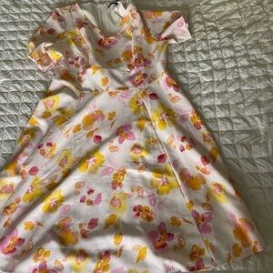 This elegant sundress features a wrap design with a tie front, perfect for a wedding guest occasion. The multicolored floral print adds a vibrant touch, while the short flutter sleeves and v-neckline enhance its feminine appeal. With a flowing silhouette and notched collar, this midi dress is ideal for casual or resort wear.