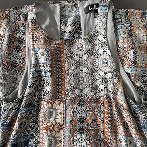 This dress gives me major 70s vibes!! I loved pairing it with some gogo boots and a flowy shirt underneath to really seal the style!! The dress is a little short on me, but not enough to cause any problems!