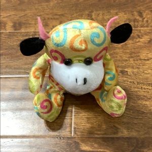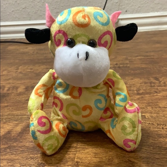 Yellow monkey with pink, orange, blue, and green swirls