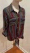 This vibrant multicolored button down shirt features a notched collar and 3/4 sleeves, perfect for a stylish and casual look.