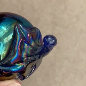 Pretty multi colored paperweight in a fruit design. Looks like carnival glass