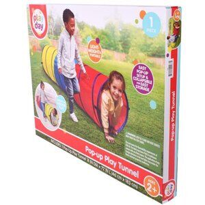 Step into a world of imagination and active play with the Play Day Pop Up Tunnel! The 6-foot-long tunnel is perfect for kids ages 2 and up, providing endless entertainment both indoors and outdoors. Made with lightweight yet durable materials, the tunnel is easy to set up and collapses for quick and convenient storage. Whether it’s a rainy day inside or a sunny afternoon out in the yard, the portable tunnel is ready for play! Let little imaginations run wild as they crawl through the tunnel, creating their own adventures and games. All while developing important motor skills through imaginative play. Connect to the Play Day Triangular Tent for more even fun. Let the adventures begin! Children Ages 3+