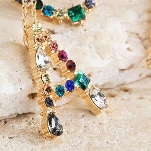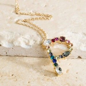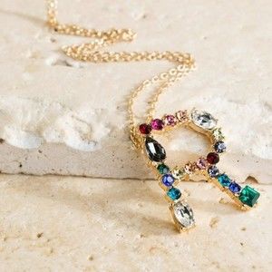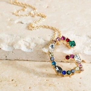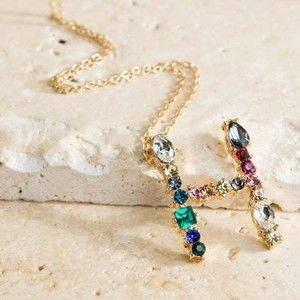 Multicolored Rhinestone Initial Necklace