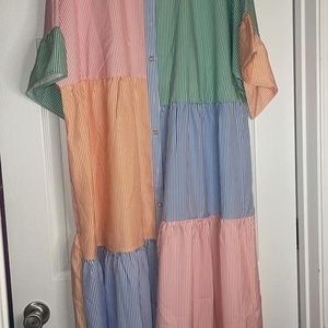 Multicolored SHEIN Colorblock Striped Flounce Sleeve Dress