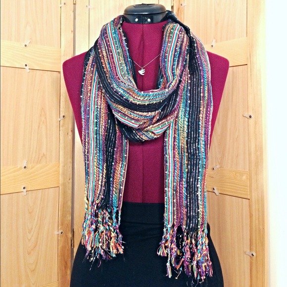 Multicolored and threaded knit scarf from forever 21 worn once and is super cozy for the upcoming chilly weather. Trades and Bargains welcome:)