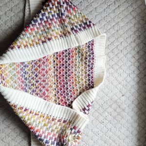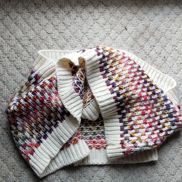 A warm and fuzzy multicolor scarf that can be worn in different ways and styles.