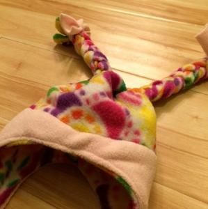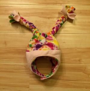 Handmade Fleece Ski or snow hat. Braided detail just for cuteness! Velcros under chin.