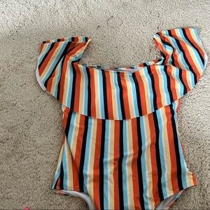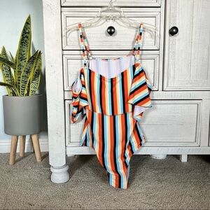 Multicolored Striped Off the Shoulder One Piece Swim Suit 1XL