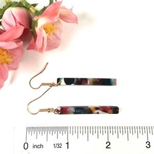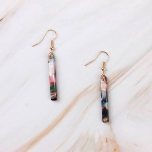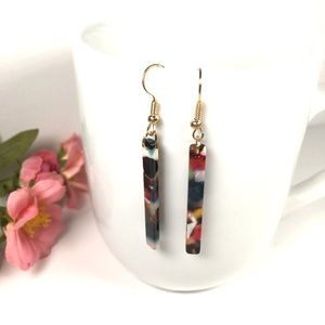 Multicolored Tortoise Shell Bar Minimalist Dangle Earrings (Dark)
