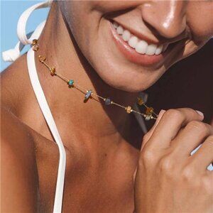 This gold necklace features multicolored created turquoise stones, blending earthy tones with a playful pop of color. Adjustable length makes it easy to style for layering or wear solo.