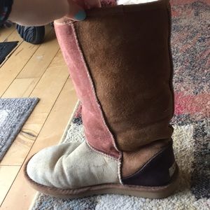 These have a mix of different colors of material sewn together and they’ve been worn only twice.