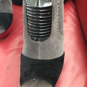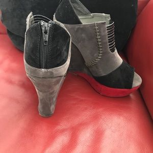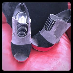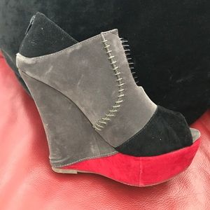 Stylish & Chic Suede Wedge! Red, Black, and Gray. Size 8. Wear it with anything. The skies the limit with this fab shoe! Worn twice.
