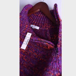 With a longer-than-average shirttail hem, this cozy sweater has a zippered turtleneck you can leave undone whenever you get that is-it-hot-in-here feeling. Brilliantly multicolored, the fuzzy Italian yarn is a total party.