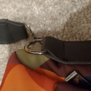 Multicolored backpack with nylon straps. Can be worn as a backpack or a shoulder. Adjustable straps for backpack. Used briefly for a week. Excellent condition
