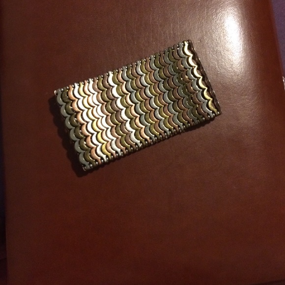 Silver, gold, and bronze thick bangle. Beautiful bracelet, goes with most outfits.