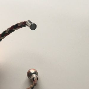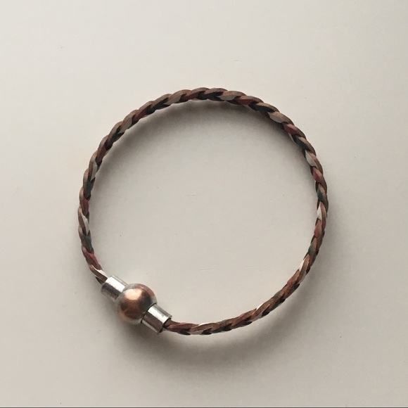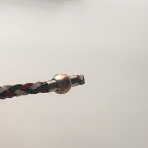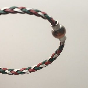 Band colors- red, green, white. Has a magnetic closure. Slight discoloration of the hardware but still in good condition.