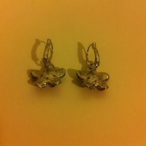 These earrings are multicolored with a red crystal in the middle. Around the petals of the are tiny silver balls outlining the flower. The back has it's own clasp so no need for pesky backs! Sterling silver.
