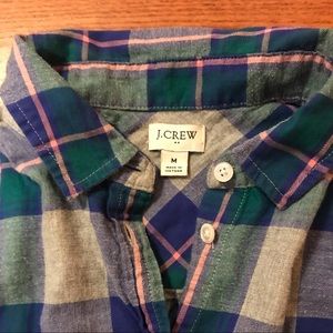 J.Crew factory, flannel, super soft. Gray base color with navy/teal and light pink plaid.
