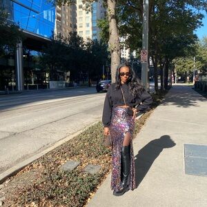 Lined sequined maxi skirt with slit. Slightly fluted. Perfect for a party!