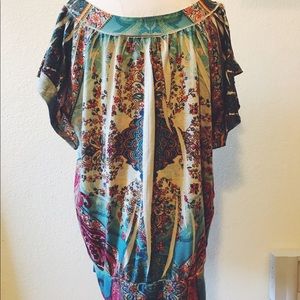 🎀Offers Accepted!🎀 A multi colored top with blue, red, and whites! It have a light ruffle in the sleeves and is more on the longer side! It has been used but it's like-new and in perfect condition