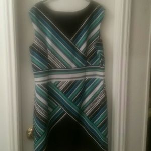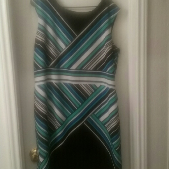 Blue, green, black and white striped dress. Never worn. No trades. Length -36 inches.