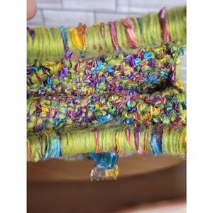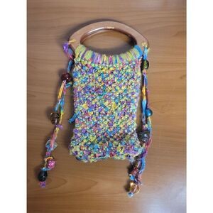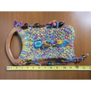 Multicolored Handmade Handbag is a beautiful blend of colors. Handbag will complete a Bohemian outfit with the different beads accenting the handbag.There is a makers flaws on front of bag a small space in the Cross stitch which can be seen in photos. Measurements included in photos. Preview pictures for a visual description before purchasing.