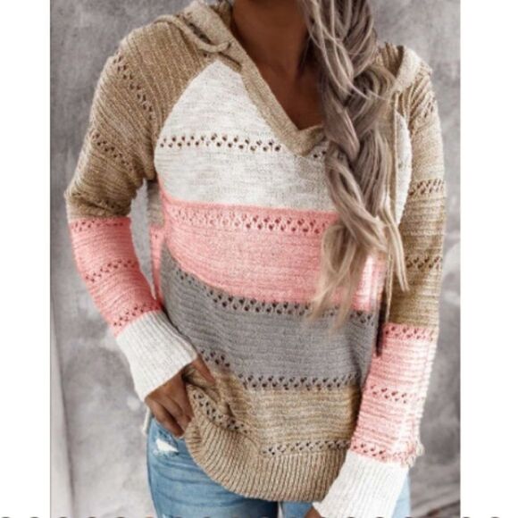 Beautiful chic lightweight hoodie.. perfect for those bonfire beach nights!! Beautiful tan and pink/peachy colored fabric with an open knit design.. really a MUST have!
