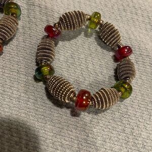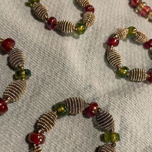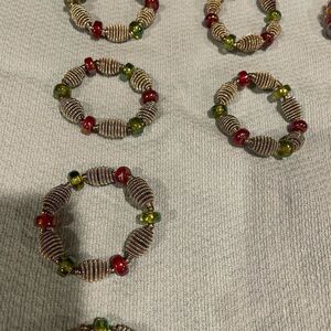 2 beautiful sets of multicolored Napkin rings. Silver tone wire details with multiple colors. Purple and green stand out the most! 2 sets of 6 each. Excellent condition. Really beautiful!