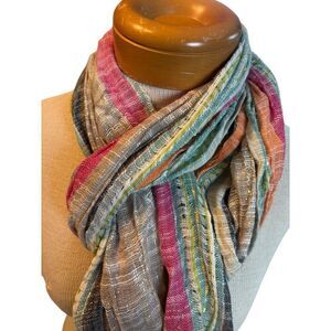 This multicolored striped scarf offers a blend of vibrant hues, perfect for adding a touch of elegance to any outfit. Crafted with care, its lightweight design ensures all-day comfort.