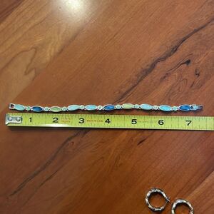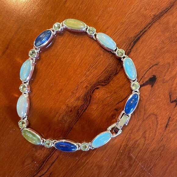 This multicolored bracelet is approx 7.5” long as pictured. No marks or tags to identify materials. Bracelet only. New without tags.