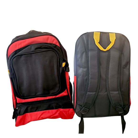 Elevate your style with this sleek red and black backpack. Perfect for daily use, it combines functionality with a modern design. Ideal for work or travel.