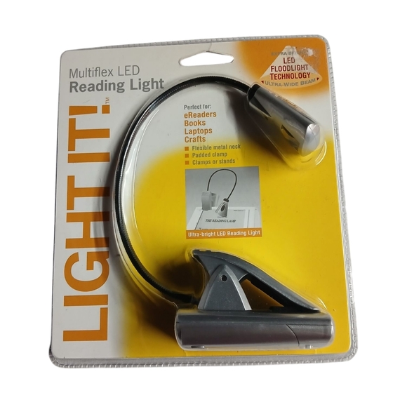Enhance your reading experience with the Multiflex LED Reading Light. Featuring a sleek silver design, this light is perfect for eReaders, books, and laptops. Its flexible metal neck and padded clamp ensure easy positioning and secure attachment. Illuminate your reading with style and convenience.