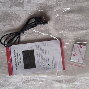 Ultra-Light and Slim Multifunction Bluetooth Keyboard with TouchPad. Like new. It was used once only. Original USB cable and manual included in its original bag.