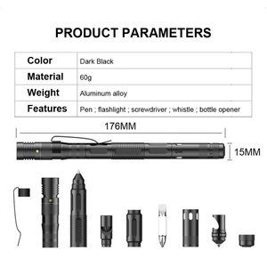 Multifunctional Self Defense Tactical Pen Defense Flashlight Aluminum Screwdrive