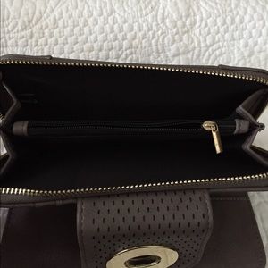 This is a great wallet. It has many options. It has a full id, credit card, card slots opening after the turn key and is in the front of the wallet. It has a zippered area, where it will hold your phone, and more personal ID, as well as, fitting a gloss inside the zippered pocket . This is in great shape, just a slight hue change on the turn knob as shown in photo. Purchased from Target