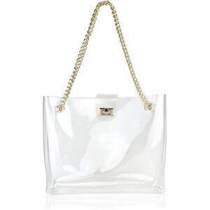Clear Chain Tote Bag for Women – Medium Transparent Shoulder Handbag with Turn-Lock Closure, Stadium Approved: