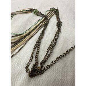 Multilayer Chain & Beaded Necklace With Pastel Green Seed Beads Boho Statement