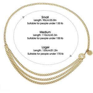 The multilayer metal waist chain is fashionable multilayer design with coin pendant decorating. Adjustable waist and It fits around most women's waist