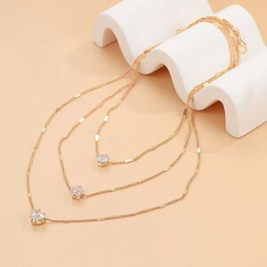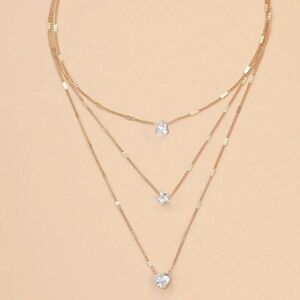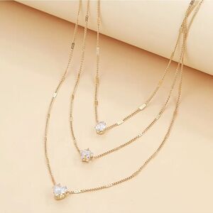 Multilayer Water Drop Love Star Rhinestone Pendant Clavicle Chain Necklace