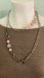 Multilayered silvertone link necklace and pink acrylic faceted stones