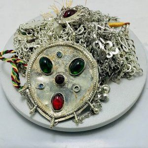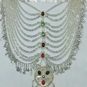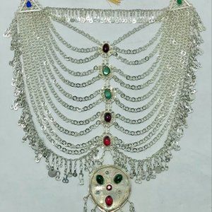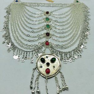 Multilayers Bib Necklace, Tribal Afghani Silver Kuchi Bib Necklace