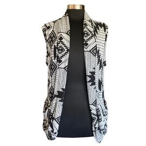 Multimedia Vest Cardigan Black & White Lace Back LARGE Southwest Western Cowgirl