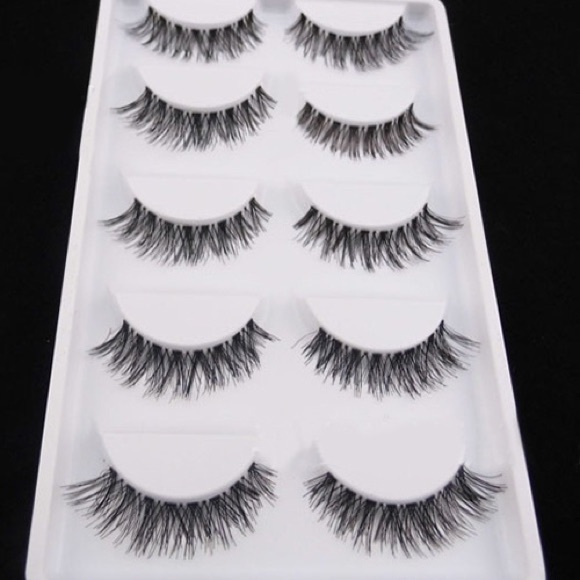5X pairs of beautiful feathery "mink like" full strip eyelashes. Each pair is handmade and can be worn multiple times. Use these lashes alone for a natural glam look or to complete a glitzy smokey eye.
