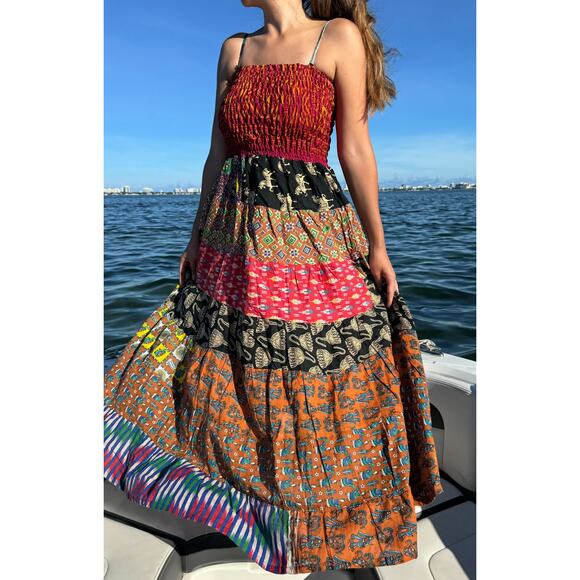 In summary, our multi-patch dress is a fun and colorful piece that is perfect for any occasion. Its adjustable straps and bohemian style make it a versatile and comfortable piece that you can wear all season long.